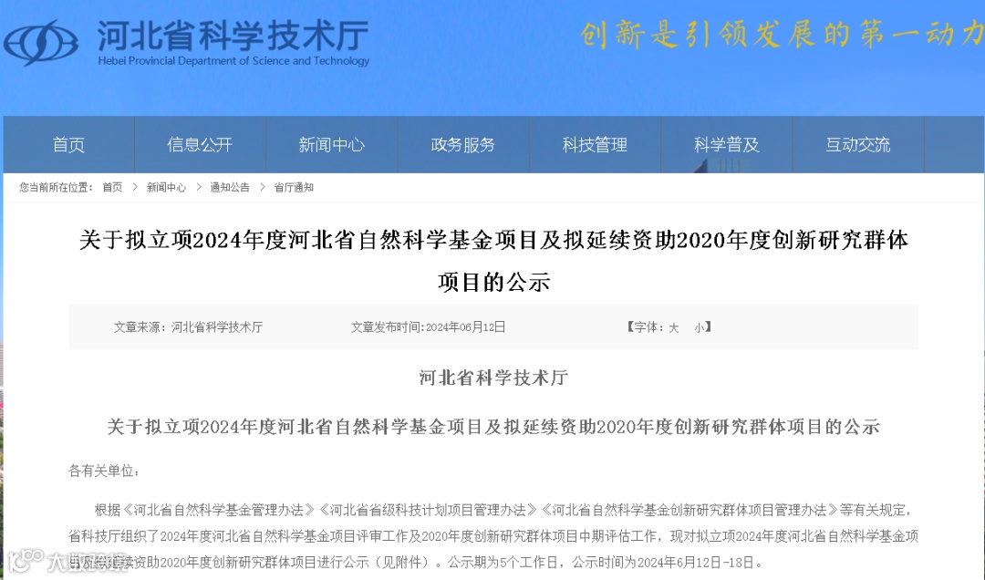 关于拟立项2024年度河北省自然科学基金项目及拟延续资助2020年度创新研究群体项目的公示