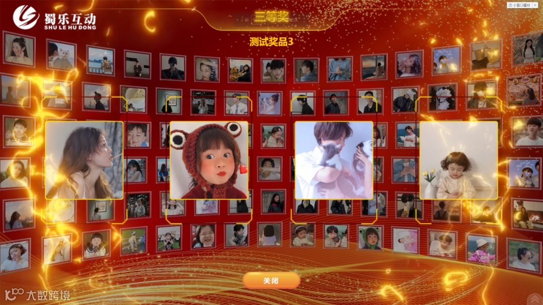 导入照片滚动抽奖功能是由蜀乐互动平台开发的一款简单、有趣,使用起来也非常方便的互动产品。蜀乐互动平台自2013年来累计推出了几十种各种形式的互动产品,能过满足各种活动场景下的互动需求。