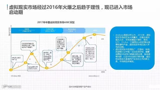 报告中指出,VR市场自2016年经过火爆之后,回归理性。现状已经进入了市场启动期,未来随着硬件及软件的软硬结合市场会迎来下一次的爆发。