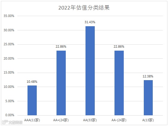 注:固定收益型收益凭证是与发行人信用挂钩的债务融资工具。无增信措施或特殊影响时,固定收益型收益凭证的估值分类评价等级一般与发行人的主体等级一致。本报告中,收益凭证估值分类评价等级与产品估值分类评价等级(以下简称“估值等级”)相同。