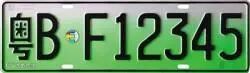 绿底的为新能源汽车专用号牌,新能源汽车号牌为渐变绿色,大型新能源汽车号牌为黄绿双拼色(地区代码部分为黄色,号码部分为绿色)。