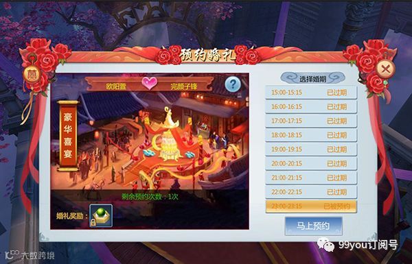➤玩家只能预约没有被其他玩家预约的时段进行婚礼。