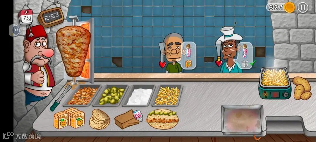 《沙威码传奇》(《Shawarma Eats》)的游戏玩法十分简单易上手。游戏中,玩家扮演的是一名沙威码店老板,需要在限定时间内完成顾客的订单,通过点击、滑动等简单操作来制作和销售沙威码。这种快速反应和节奏感强烈的玩法能够迅速吸引玩家的注意力,并带来即时的满足感。