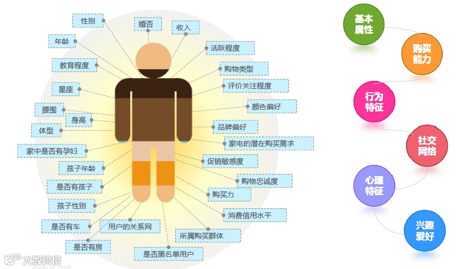 隐性画像:指用户通过行为和偏好反映出来的信息,如购物记录、浏览历史、兴趣标签、使用频率、使用目的、场景、搜索记录等,这些信息相对动态,可以用来分析用户行为模式和心理特征。例如,根据购物记录分析用户的消费能力和喜好,根据浏览历史分析用户的兴趣点和热点话题,根据使用频率分析用户的活跃度和黏性等。