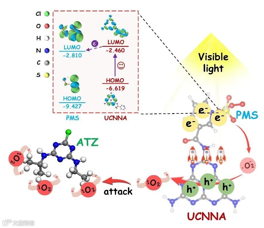 莠去津(ATZ)作为一种高效的杂草除草剂,在过去的几十年里得到了广泛的应用,并为作物生产带来了许多好处。但过量的使用ATZ,使得其不断被释放并在自然水环境中积累。此外,ATZ已被列为可能对人体健康产生有害影响的内分泌干扰化学物质。因此,迫切需要寻找从污染环境中去除ATZ的方法。迄今为止,光催化耦合PMS是一种环保的工艺,利用活性物质来降解污染物,不需要过多的化学物质或苛刻的条件。此外,光催化剂可以有效地引入能量来激活PMS。同时,PMS捕获电子,从而阻碍光催化剂内光生电子和空穴的复合。在众多光催化剂中,聚合物氮化碳(PCN)具有化学稳定性高、易于合成、易于大规模生产等特点。然而,PCN对PMS的有效激活受到光生电荷不可预测的运动和快速重组的严重阻碍。因此,合理设计具有电子定向传递功能和PMS吸附位点的PCN用于降解ATZ仍然十分重要。