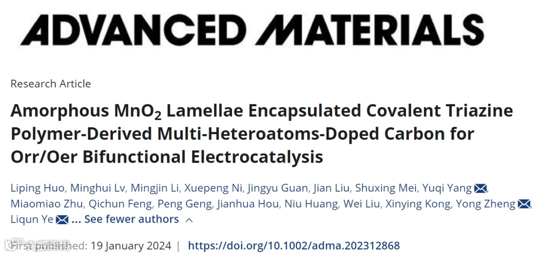 具有结构可控、毒性低、催化活性高等优势的MnO2材料被认为是高性能OER/ORR催化剂的理想材料。然而,大多数用于ORR/OER电催化的是晶态MnO2材料。非晶二氧化锰(A-MnO2)自身丰富的固有缺陷可转化为边缘和表面暴露的催化活性中心,有利于促进ORR和OER反应进程。然而,导电性不佳和低的孔隙率等问题严重阻碍了其进一步发展。共价三嗪聚合物(CTPs)被认为是制备多杂原子掺杂纳米碳基催化剂的典范前驱体。在CTP碳骨架中引入各种非金属成分(如B、N、P、F和S)可形成多杂原子掺杂的电催化活性位点,有效促进电催化反应。因此,能否通过将两者有效复合以获得具有优异双功能催化活性和稳定性的电催化剂?