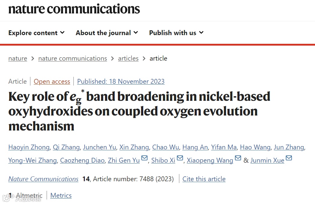 在电催化析氧反应(OER)中,我们此前在羟基氧化镍(NiOOH)基材料中发现了一种新型的电催化析氧机制-耦合析氧机制(COM),其不同于传统的金属作为氧化还原中心的AEM(吸附)机制和氧作为氧化还原中心的LOM(晶格氧)机制。在该新机制中,去质子化时金属作为氧化还原中心,氧-氧成键时氧作为氧化还原中心。因此,COM机制能够突破传统OER机制的弊端,提升催化性能。研究发现,该机制是由eg*能带展宽引起的。然而,eg*能带展宽在电催化耦合析氧机制中的作用及内在关联不清晰。