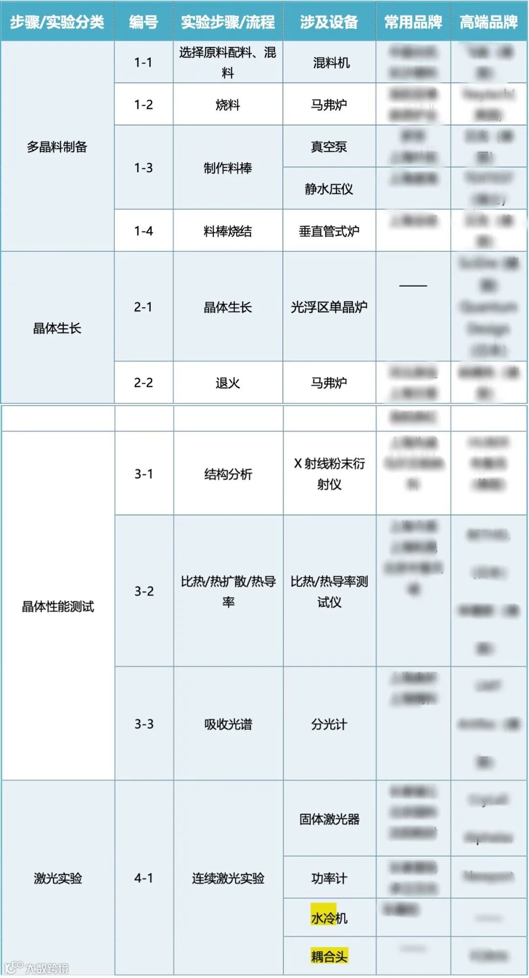 方案包含多晶料制备、晶体生长、晶体性能测试、连续激光实验等大部分4个流程,涉及14种设备。