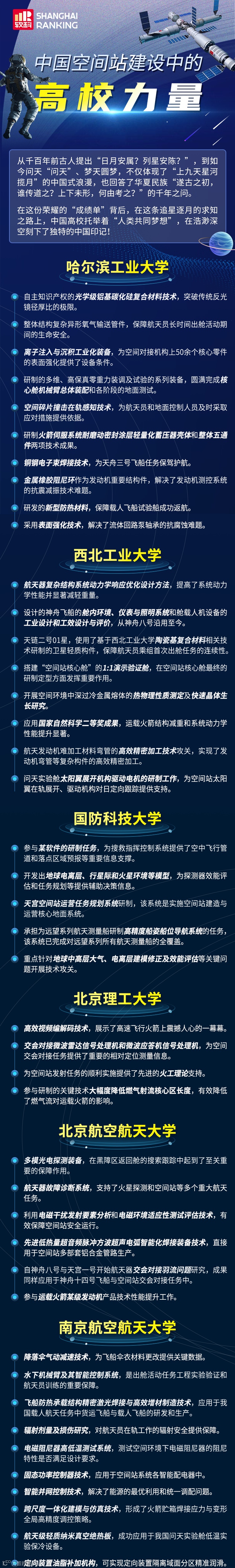 回顾中国空间站的建造历程,中国航天人笃定前行,一次又一次刷新“中国速度”、展现“中国精度”、彰显“中国气度”。众多高校逐梦苍穹的脚步不止,以高校智慧助力着航天强国征途。
