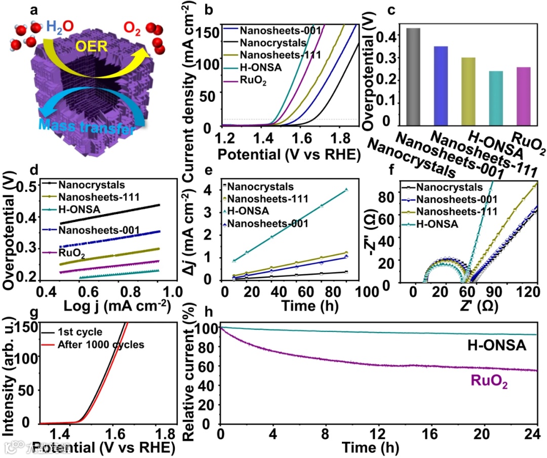 总的来说,本文合成出具有独特晶面暴露和单晶正交阵列框架的CuFe PBA,其具有核壳结构或中空结构。同时,揭示出结构-OER性能的功能相关性。该研究有望为具有增强性能的MOF纳米片基结构/异质结构设计提供有效指导。