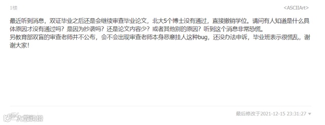 就连最高学府北大,也曾有5个博士,因为没有通过论文的二次抽检,在双证毕业之后直接被撤销了学位!