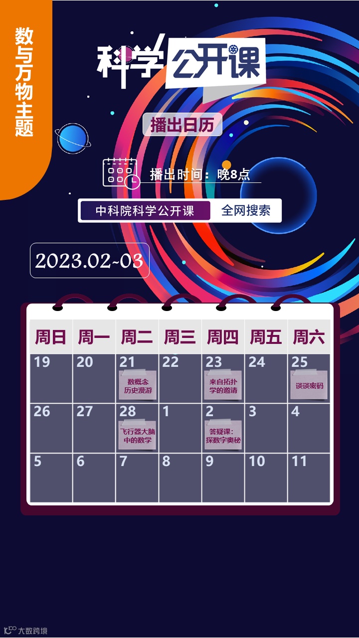 《科学公开课》(第三季)是由中国科学院科学传播局、中国科学院学部工作局和教育部基础教育司联手举办的系列科普课程,将于2023年1月10日起每周二四六晚8点(除夕至大年初六除外),在全网各大平台播出!