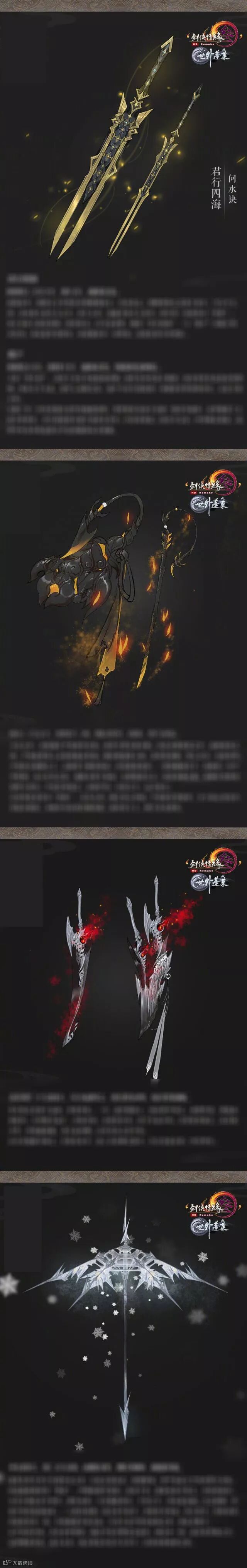 剑网三100级大橙武原画曝光,根据剑网三官方微博的消息,100级大橙武原画集中展示,通过这些图鉴可以看到100级大橙武武器的原画设定,每一把都是光彩熠熠,让人看后就能知道这些武器的犀利。