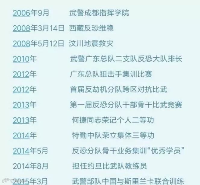 其次,作为一名军人,何捷的成绩同样优秀。他不仅仅是特种兵,还是高级反恐精英、武警特战指挥员。
