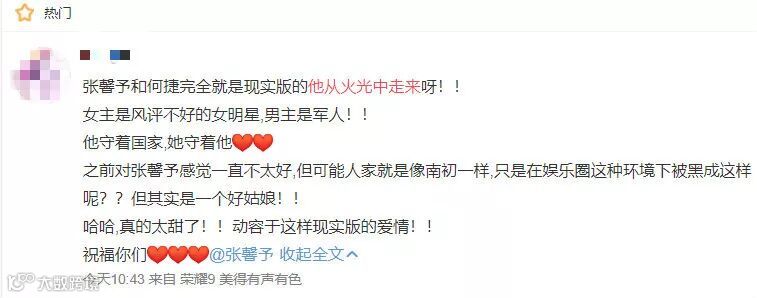 然而,可能是大家都觉得《他从火光中走来》的剧情太符合张馨予这对了,以至于小说原作者耳东兔子都跑出来说话:大家好好祝福,卖安利就算了。