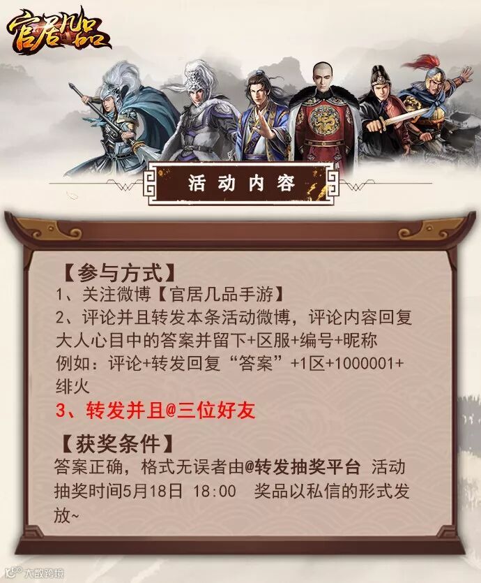 2、评论并且转发本条活动微博,评论内容回复大人心目中的答案并留下区服+编号+昵称