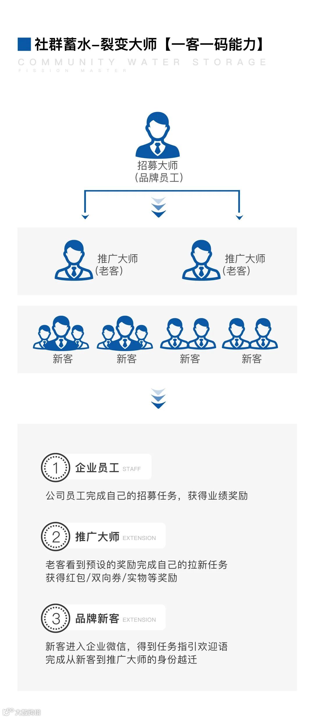 除了发挥老客户增购价值外,通过裂变大师让核心的老客户具备一定的裂变能力,利用口碑营销的手段去拓展新客,一码三关。