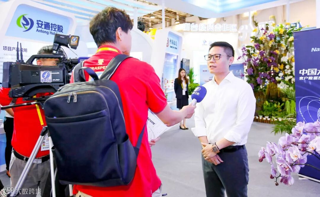 ▲南讯CEO陈碧勇(右)接受福建省电视台记者采访