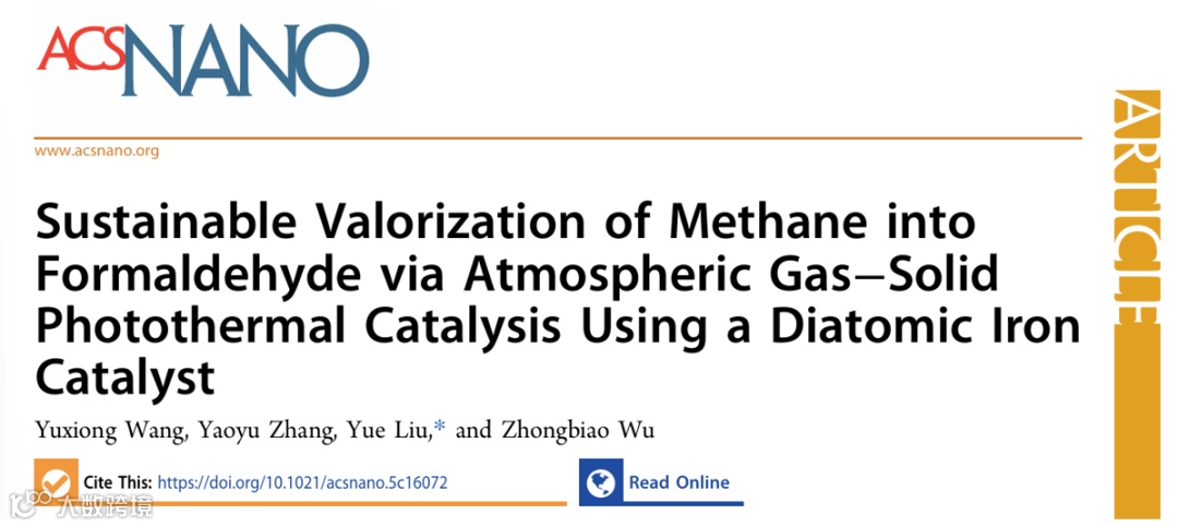 近期,《ACS Nano》发表了一篇题为“Photothermal direct methane conversion to formaldehyde at the gas-solid interface under ambient pressure”的研究论文。该论文提出了一种双原子铁催化剂(Fe2-ZnO),在常压下通过气-固光热催化实现甲烷(CH4)高效、高选择性转化为甲醛(HCHO)。该催化剂在50小时连续反应中保持稳定(活性下降<10%),甲醛产率达31.8 mmol gcat−1 h−1,选择性为71.7%,并通过水吸收获得浓度高达579.7 μmol mL−1(1.74 wt%)的甲醛溶液。该研究为甲烷绿色转化提供了新策略,并展示了双原子催化剂在可持续化工中的潜力。