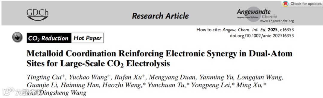 T.-T. Cui, Y.-C. Wang, R.-F. Xu, M.-Y. Duan, Y.-M. Yu, L.-Q. Wang, G.-J. Li, H.-M. Han, H.-Z. Wang, Y.-C. Tu, Y.-P. Lei, M. Xu, D.-S. Wang, Metalloid Coordination Reinforcing Electronic Synergy in Dual-Atom Sites for Large-Scale CO2 Electrolysis.Angew. Chem. Int. Ed. 2025, e16353.
