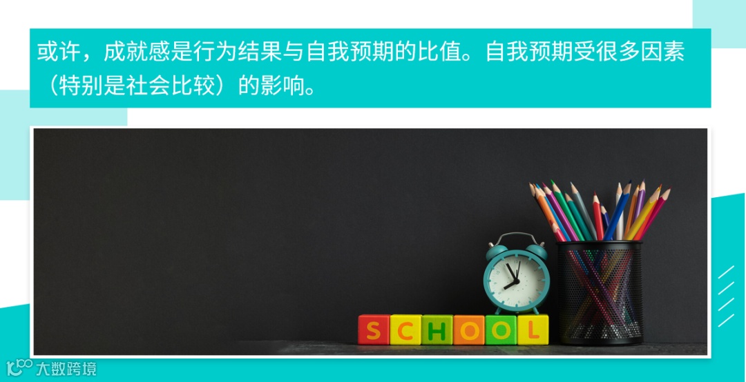 有人用这样一个公式来衡量一个人的成就感:成就感=能力/理想。也就是说假如你的能力是100,理想也是100,那么你的成就感就是1;如果你的能力是100,而理想是200,那么你的成就感就要打折成为0.5。