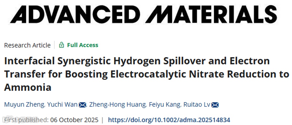 M. Zheng, Y. Wan, Z.-H. Huang, F. Kang, and R. Lv, Interfacial Synergistic Hydrogen Spillover and Electron Transfer for Boosting Electrocatalytic Nitrate Reduction to Ammonia. Adv. Mater.: e14834 (2025).