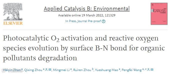 周启星团队ACB: 表面B-N键光催化分子氧活化及活性氧的产生应用于有机污染物降解 邃瞳科学云