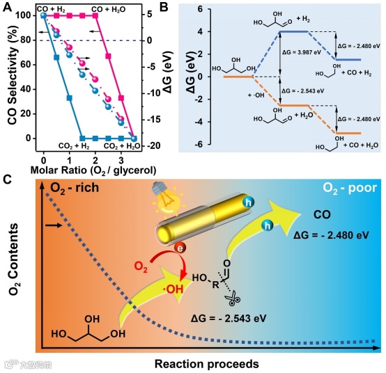 导读:本文通过引入氧气调控光催化反应过程中的ΔG,发展了一种光催化生物多元醇氧化重整制备CO的新方法。