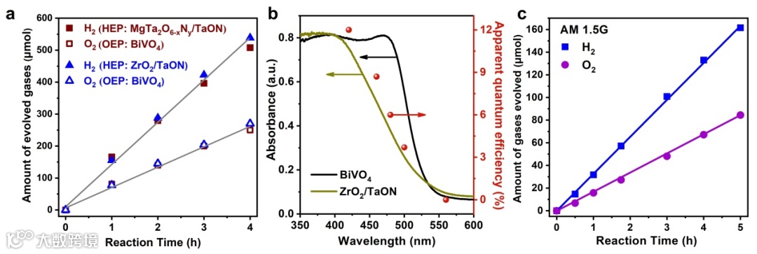 基于具有良好光稳定性的无机半导体材料实现光催化全分解水已被证明是经济可行的、利用太阳能制氢最有希望的方法之一。为了实现较高的太阳能-氢能转换效率,需要提升具有较宽可见光吸收材料的全分解水制氢量子效率。然而,吸光范围的拓展通常伴随着光生载流子驱动力的降低,使电荷分离变得极为困难。此外,全分解水体系的构建面临着水氧化这一热力学爬坡且动力学涉及多电子转移的挑战。因此,由可见光驱动的光催化全分解水体系不仅数量有限,而且效率也普遍低于紫外光驱动的光催化全分解水体系。