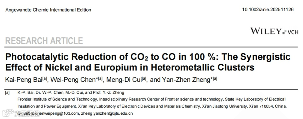 Kai-Peng Bai, Wei-Peng Chen*, Meng-Di Cui, and Yan-Zhen Zheng*. Photocatalytic Reduction of CO2 to CO in 100 %: The Synergistic Effect of Nickel and Europium in Heterometallic Clusters. Angewandte Chemie International Edition, 2025, e202511126.