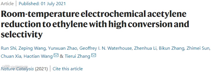 Shi, R., Wang, Z., Zhao, Y. et al. Room-temperature electrochemical acetylene reduction to ethylene with high conversion and selectivity. Nat Catal (2021). https://doi.org/10.1038/s41929-021-00640-y
