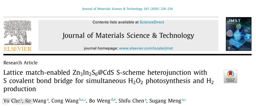 1. 具有晶格匹配的Zn3In2S6@CdS S-型异质结构已成功制备完成。