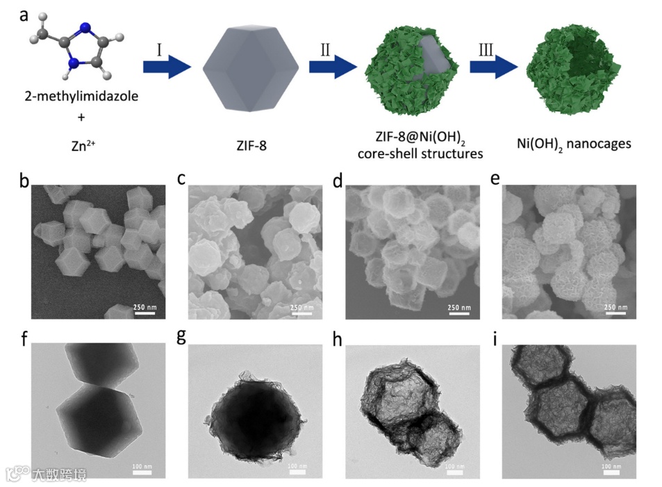 图1. ZIF-8在不同镍盐浓度下的形态演变。