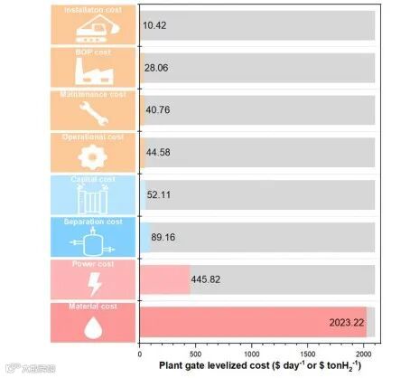 图3. 电化学裂解甲醇制氢的成本计算。