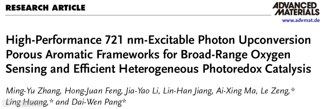 用于宽范围氧气传感和高效非均相光催化的高性能721 nm激发的光子上转换多孔芳香骨架