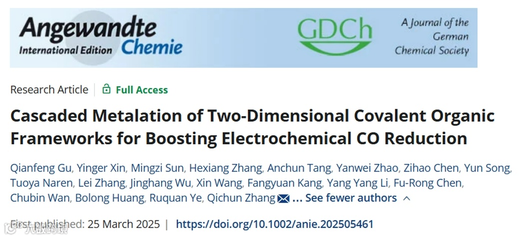 Qianfeng Gu, Yinger Xin, Mingzi Sun, Hexiang Zhang, Anchun Tang, Yanwei Zhao, Zihao Chen, Yun Song, Tuoya Naren, Lei Zhang, Jinghang Wu, Xin Wang, Fangyuan Kang, Yang Yang Li, Fu-Rong Chen, Chubin Wan, Bolong Huang, Ruquan Ye, Qichun Zhang. Cascaded Metalation of Two-Dimensional Covalent Organic Frameworks for Boosting Electrochemical CO Reduction, 2025.