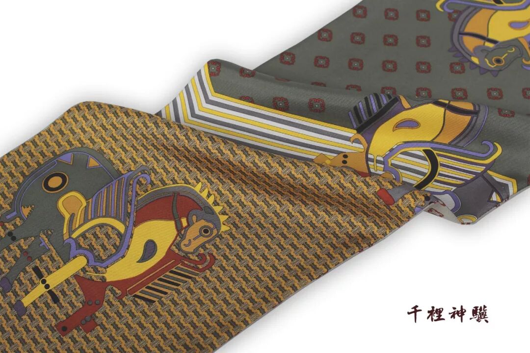 千里神骥自古以来即为宝马、神马。此款丝巾20*200cm的特殊尺寸,取材于唐代,唐团窠联珠马纹锦。寓意前程似锦的神马根据设计师不同的配色,适合男士佩戴同时,作为女性饰物配搭亦别具风情,符合时尚的中性风潮。