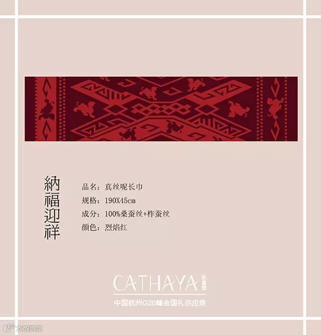 这款围巾,来自杭州的丝绸品牌凯喜雅。作为一个知名的品牌,在之前的G20杭州峰会上,凯喜雅的丝绸产品作为国礼,大放异彩。