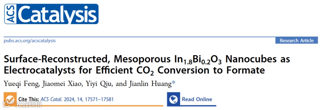 在电催化CO2还原反应(CO2RR)过程中,精确控制和理解铟(In)基催化剂的表面变化具有挑战性。本研究通过在介孔In2O3纳米立方体中掺杂铋(Bi),制备了一系列表面重构的In2O3−Bi电催化剂。通过原位表面重构,在In2O3晶态-非晶态界面引入了丰富的双金属In-Bi位点,提高了CO2向甲酸转化的选择性。Bi原子加速了In2O3的表面重构,降低了In原子周围的电荷密度,促进了In2O3的部分非晶化。原位X射线衍射(XRD)和傅里叶变换红外光谱(FT-IR)测量以及密度泛函理论(DFT)计算表明,双金属In-Bi位降低了HCOOH*中间体的能垒,增强了H2O的解离,抑制了析氢反应(HER)。表面重构的In1.8Bi0.2O3电催化剂的甲酸盐法拉第效率(FEformate)为92.6%,分电流密度为−28.5 mA·cm−2,在H型电解池中可以稳定工作110 h而无明显活性降低。在流动电解池−1.4 VRHE电位下,FEformate达到97.6%,并在800 mV(从−1.0到−1.8V vs RHE)的宽电位窗口内,FEformate保持在94%以上。本研究为基于表面结构设计高性能CO2RR电催化剂提供了有效途径。