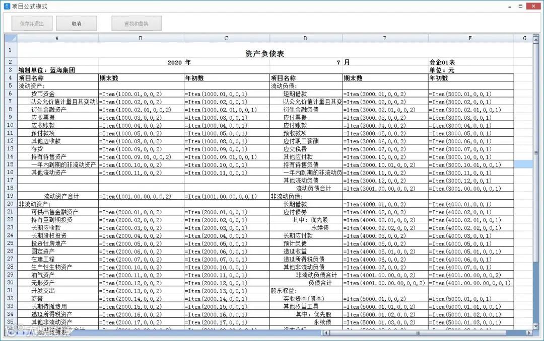 先来看个别报表中的两类公式:取数公式 和 项目公式