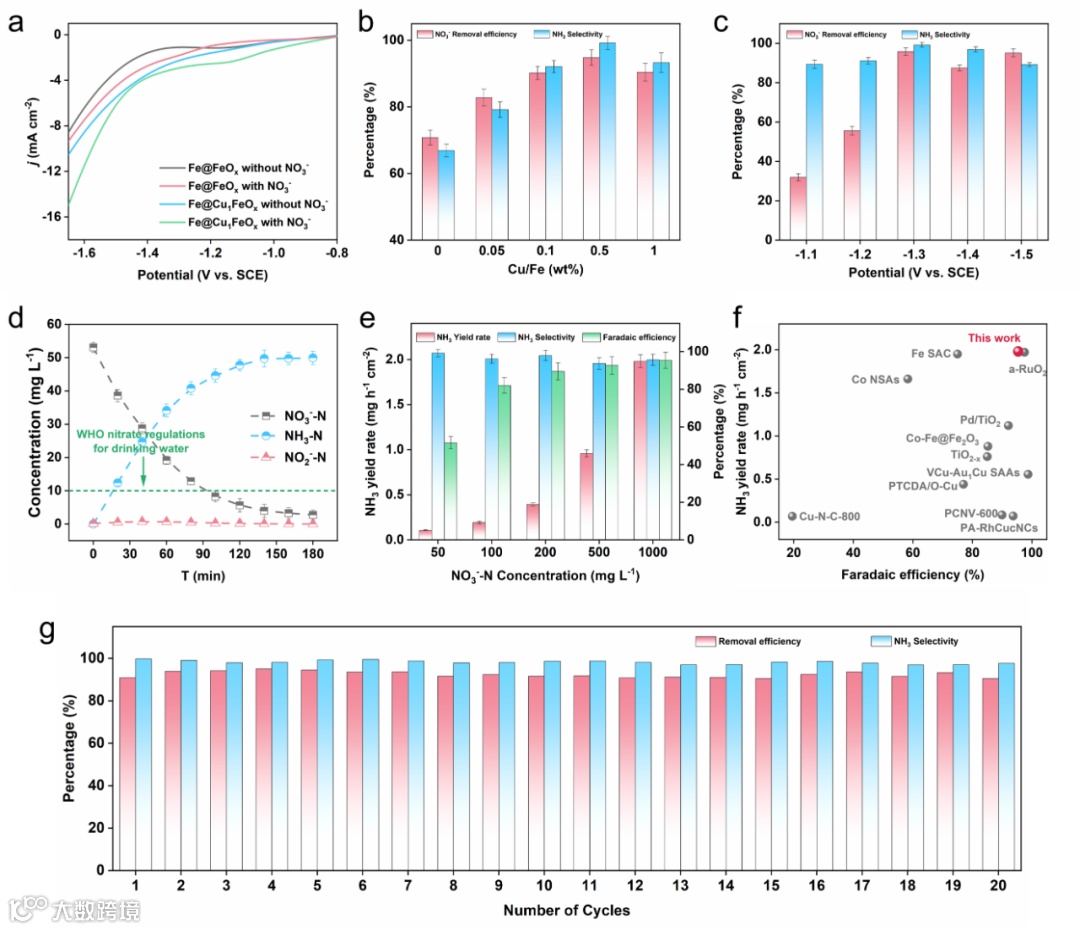图2 Fe@Cu1FeOx催化剂电化学硝酸盐还原性能测试。