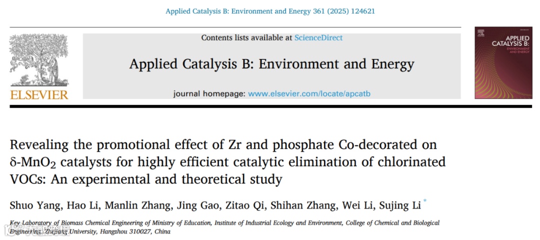 S. Yang, H. Li, M. Zhang, J. Gao, Z. Qi, S. Zhang, W. Li, S. Li, Revealing the promotional effect of Zr and phosphate Co-decorated on δ-MnO2 catalysts for highly efficient catalytic elimination of chlorinated VOCs: An experimental and theoretical study, Applied Catalysis B: Environment and Energy, 361 (2025).