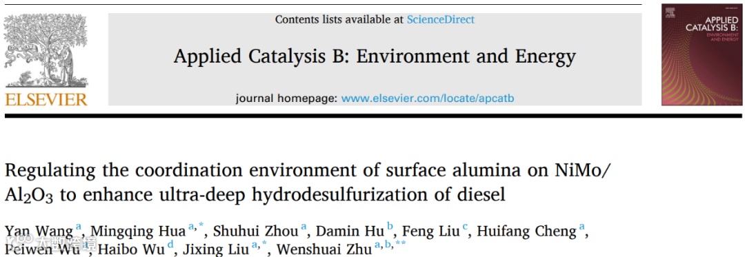 加氢脱硫是炼油工业中实现燃料清洁化、减少环境污染和满足严格法规要求的关键技术。为达到超深度脱硫目的,通常需在HDS催化剂制备过程中引入第二种金属,这必会增加催化剂的生产成本。Brønsted酸(B酸)在HDS中通过增强含硫化合物的吸附和活化,促进异构化路径,从而减少了对氢气的需求并降低了反应所需的苛刻条件。B酸的存在显著提高了脱硫效率,优化了催化剂的性能和脱硫过程的经济性。鉴于此,迫切需要开发一种创新而直接的方法来调控Ni(Co)Mo(W)/γ-Al2O3催化剂中的Brønsted酸,且无需额外的掺杂剂。尽管已知铝的配位状态对活性组分的电子结构和几何形态有影响,但这一领域的深入研究仍然不足。