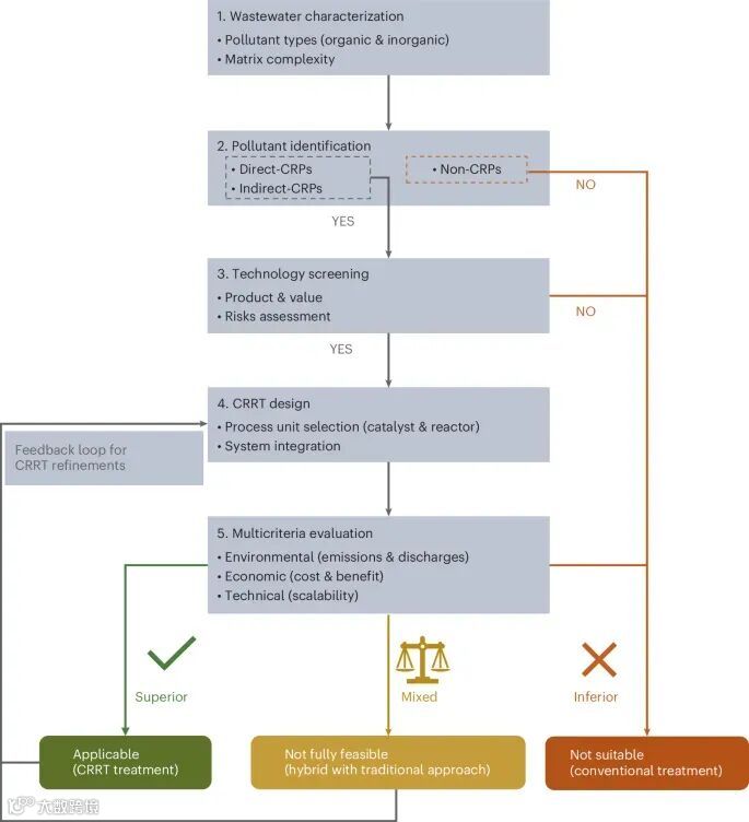 :CRRT虽需较高初始投资,但长期可通过降低运营成本、提升原料利用率实现经济性。技术经济对比显示(表1),CRRT在多数案例中实现>99%去除率并回收高值产品,经济效益显著。但部分路径可能因产品市场价值低而经济回报不佳。