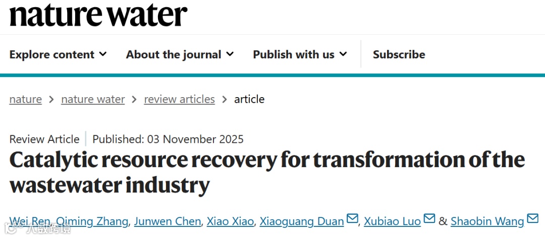 阿德莱德大学王少彬团队Nature Water综述: 催化资源回收助力废水产业转型