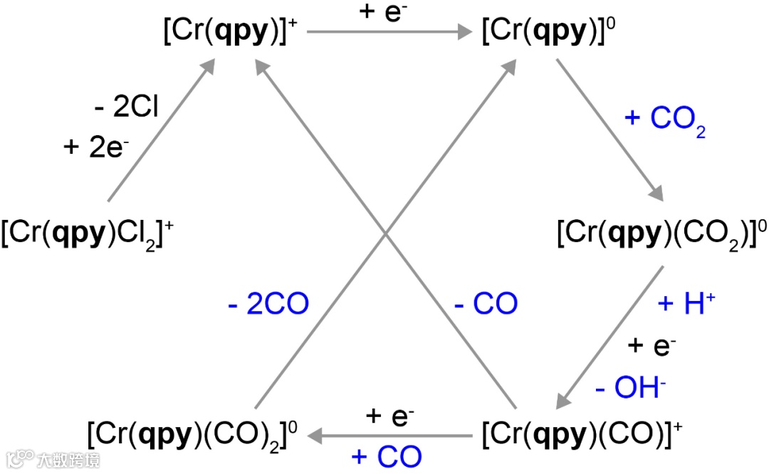 图3. 所提出的CrQPY催化CO2还原的反应机理。