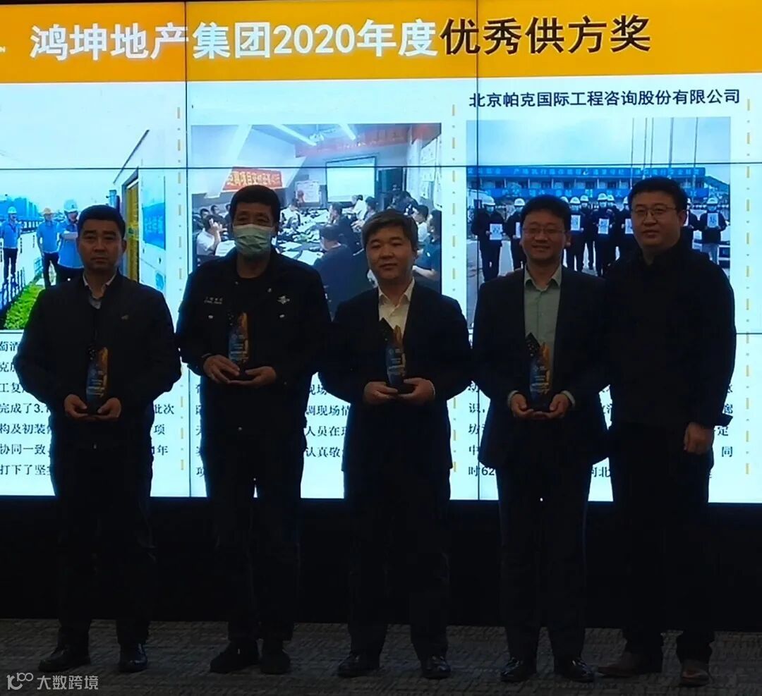2021年3月19日,鸿坤地产集团在其集团总部举办“鸿坤同路人之暖春有约-鸿匠基石专场”活动。在此活动中,帕克国际再次获得鸿坤集团优秀供方单位称号,荣获“鸿坤地产集团2020年度优秀供方奖”。在近五年战略合作过程中多次获得各项殊荣,今年也同时被授予“鸿坤同路人”荣誉证书。鸿坤地产集团总裁助理欧立志先生、监事会主席孔祥民先生莅临参加本次活动并与参会代表热情交流;鸿坤集团北京分公司总经理李卫锋先生为帕克国际等优秀单位代表颁奖。帕克国际董事、总经理白晨,市场部负责人李朝建受邀参加,并在交流环节代表监理单位针对新形势下行业、企业发展建言献策。