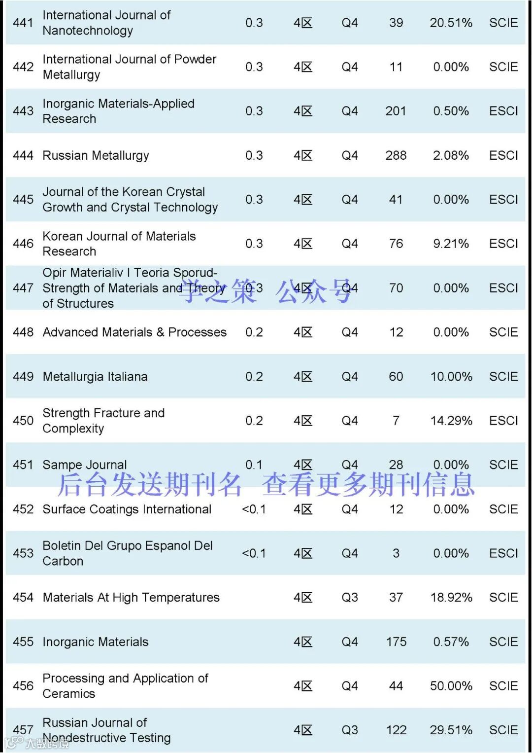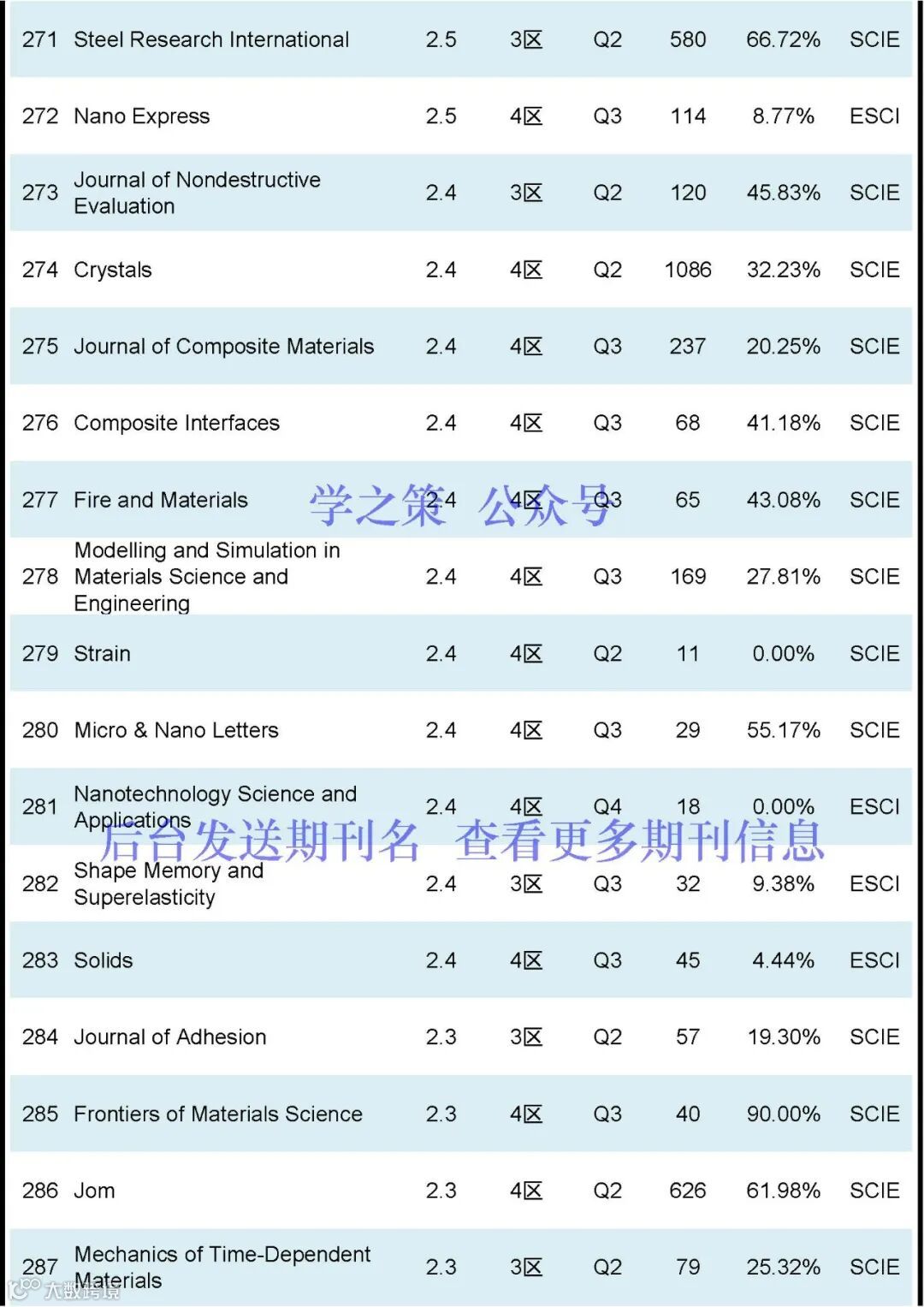 本期对【材料科学】领域的期刊相关数据进行了整理,共计有492本(含365本SCIE和127本ESCI)。