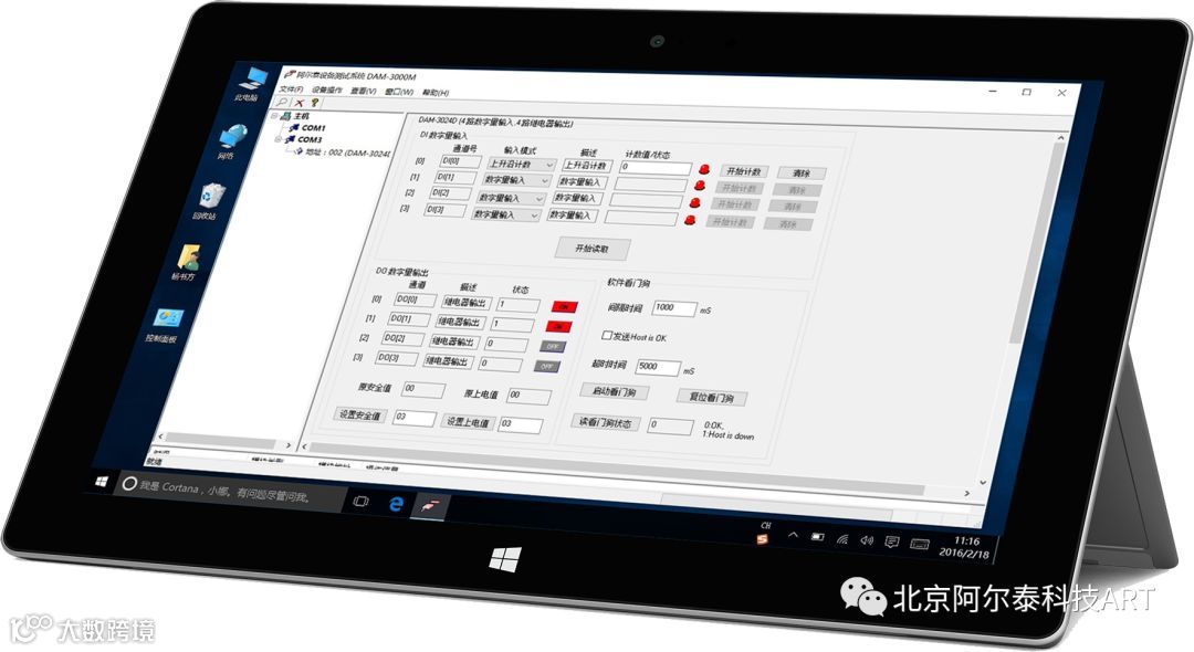 也可以用在平板电脑上,比如:微软Surface Book,经过测试已正常运行。如需要在平板电脑上使用,需要配合我公司DAM3232转换器(USB转485模块)一起使用。