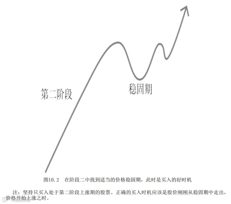 找到了处在第二阶段的合适标的后,下一步就是等待一个合适的时期积极进入,一个最理想的时间点是在上涨一段时间后的价格稳固期。